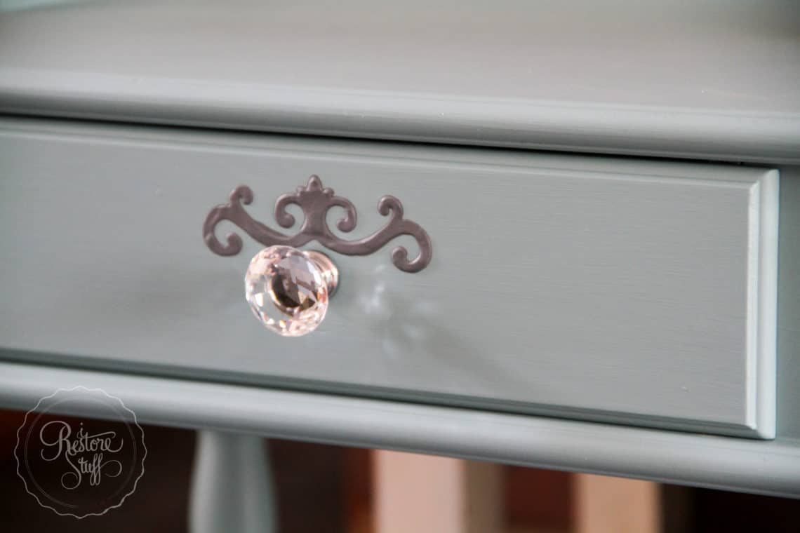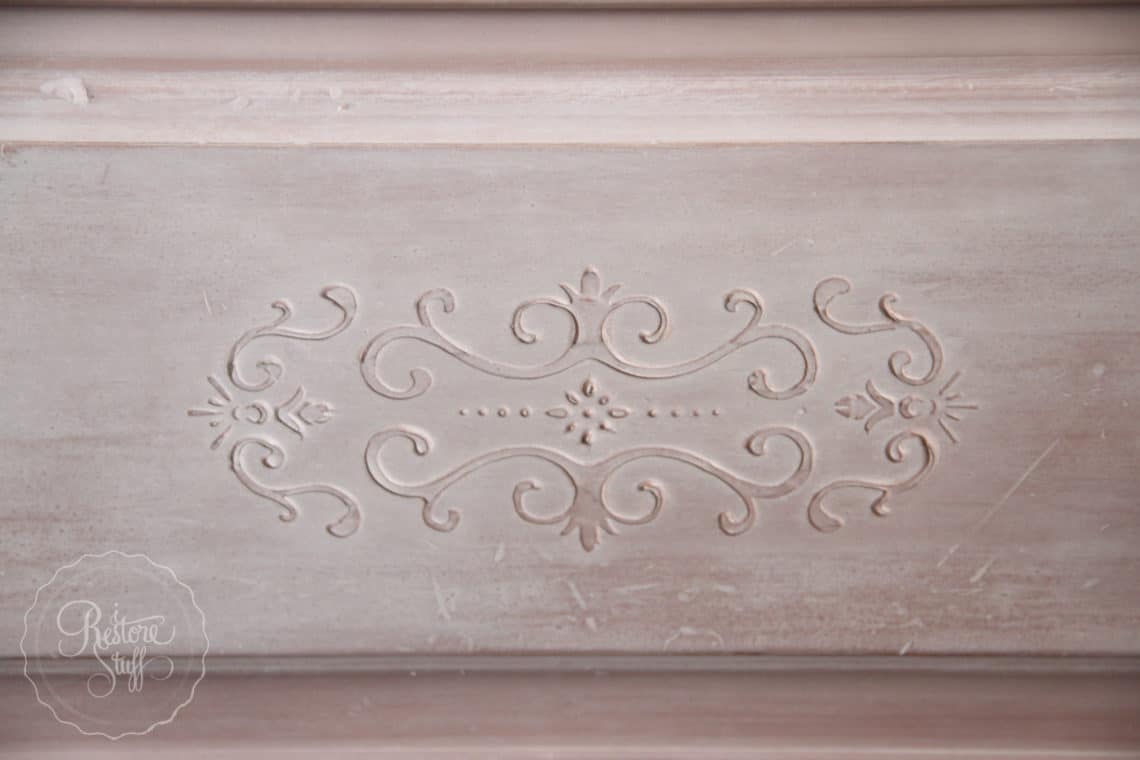 Part of a Corner Trim stencil used on this drawer with Fusion’s Smooth Embossing Paste mixed with colour Soap Stone & Casement.