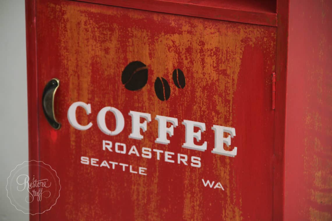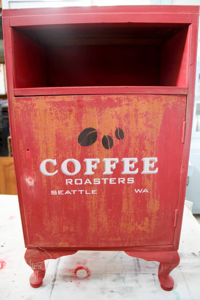 There are a number of ways to finish or seal a painted piece of furniture, from furniture wax, to oils & wipe-on poly’s. For this project I used Miss Mustard Seed’s Tough Coat Sealer. It’s a non-yellowing clear top coat with a satin to matte finish, and it is great for sealing off any of the paint that might want to continue flaking in the case of this chippy cupboard.
