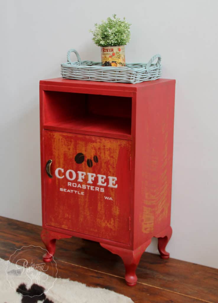 I picked up this little vintage pot cupboard at a local charity store. I forgot to take a before photo, but here it is after a light sanding with my Sandi Hands Sanding glove. It is a wood veneer and quite light to carry, but I love those cute legs.