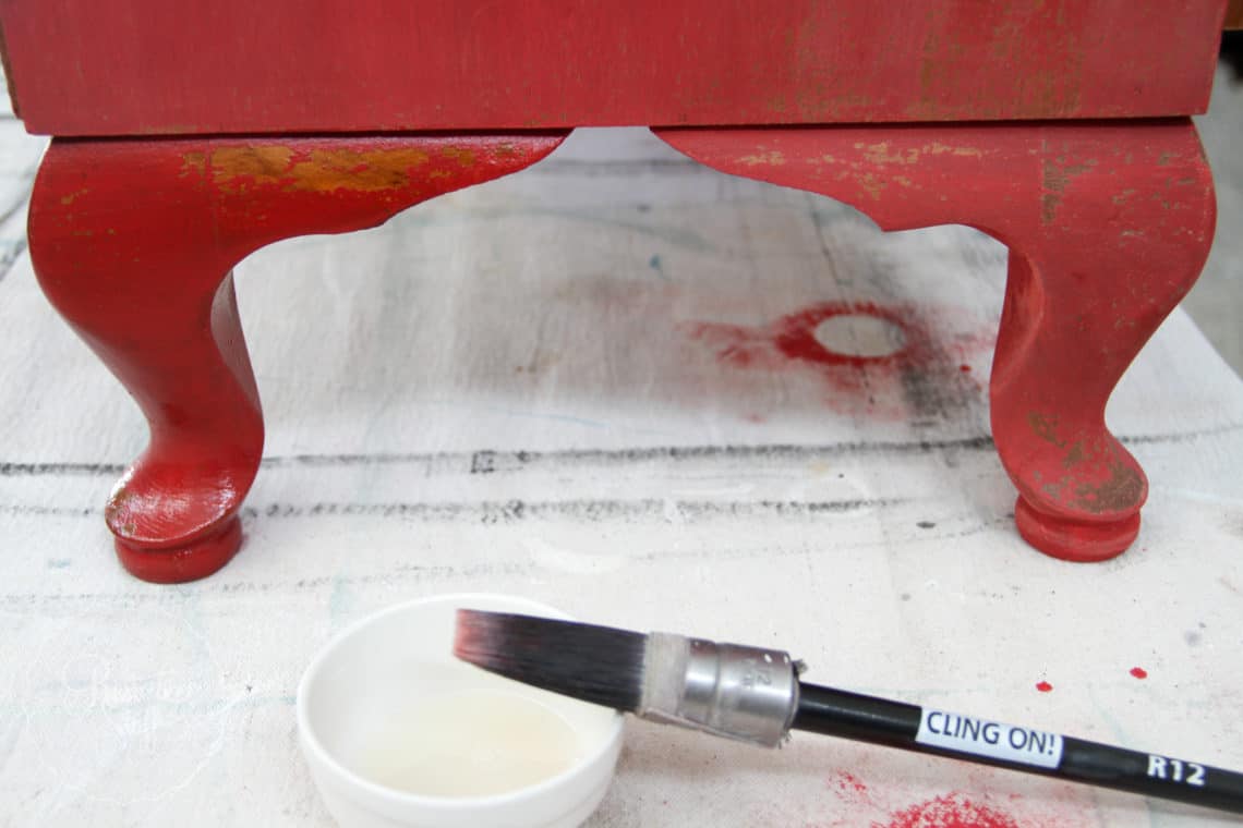 I pulled out my pot of Tricycle red, and if you haven’t used Milk Paint before, tricycle can be a tricky colour to start with because of the rich pigment which can take a minute or two to mix in thoroughly.