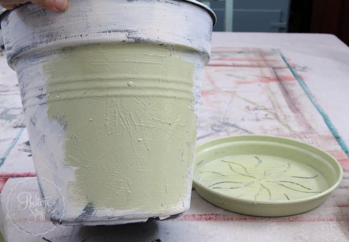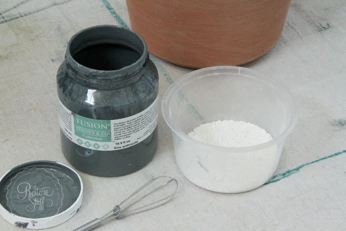 Plastic pot painted in Fresco/Fusion Mineral Paint mix