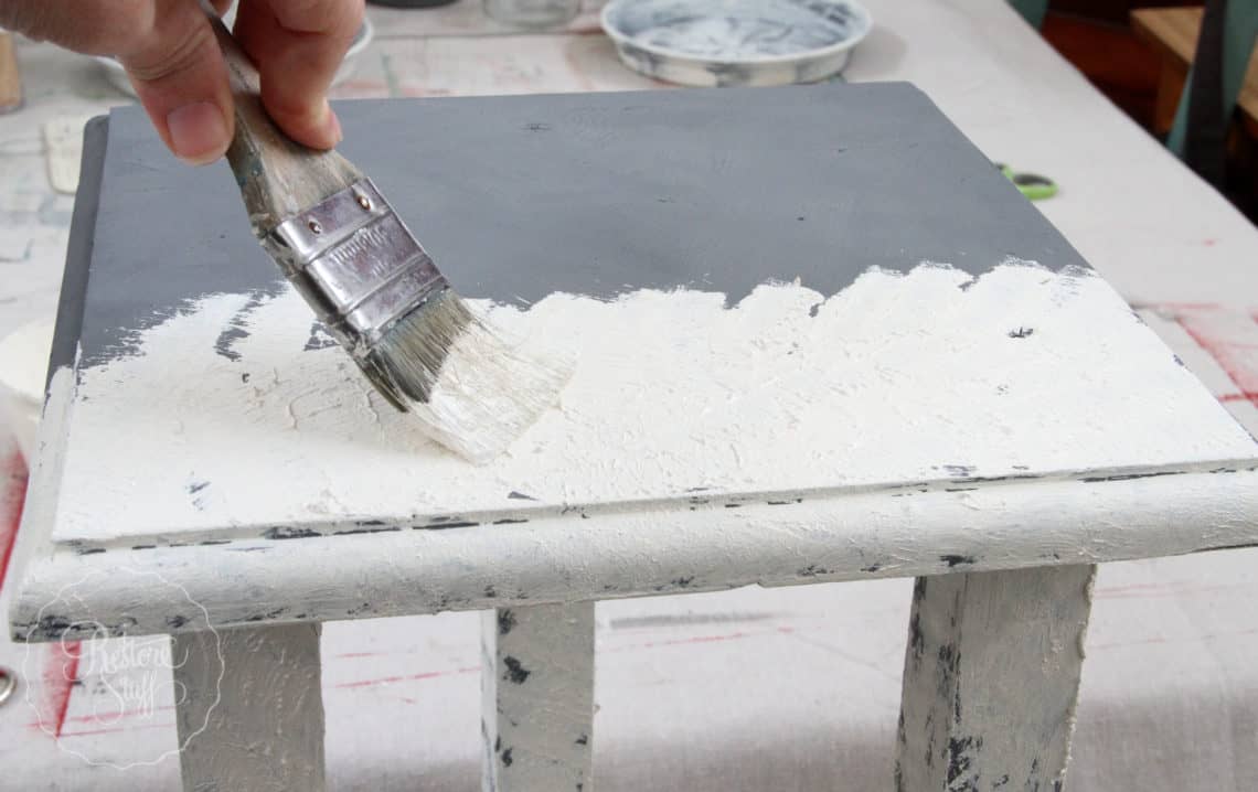 Apply the Fresco & Paint mixture to your project using the brush in a stippling, textured effect. You can brush in different directions for added textural interest: