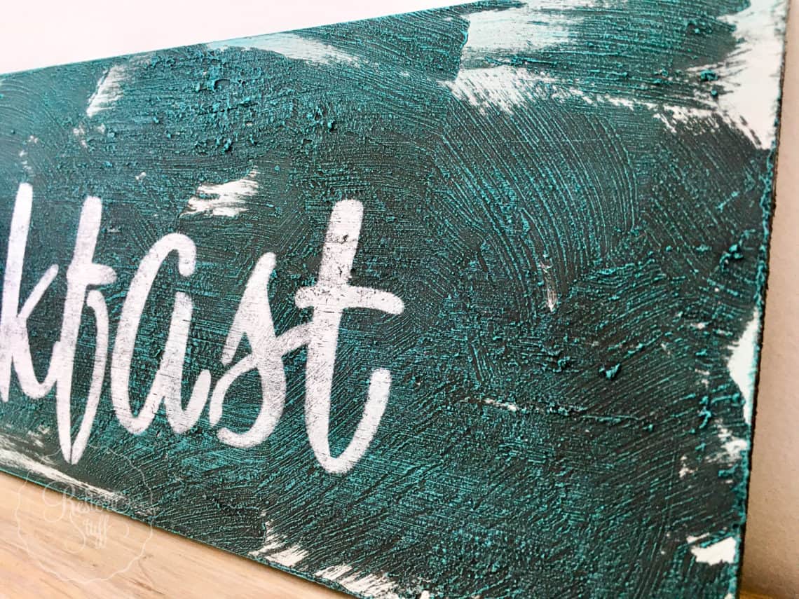 You’ll find more tips on how to mix Fresco here. But basically, you’ll add one part Fresco to two parts paint and mix to form a cottage cheese style lumpy paint.
