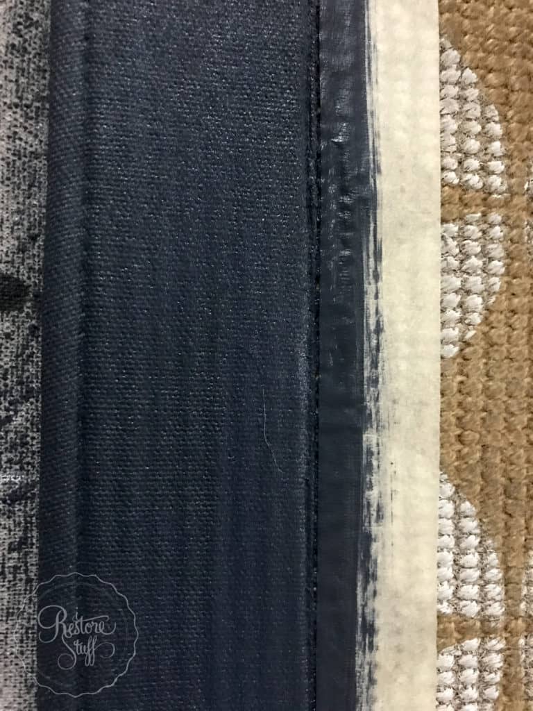 Painting a Jute RugThe Midnight Blue covered really well over all. I did touch up a little the next day when the paint had dried and I could see any areas that may not have covered as well – mainly in the stitching areas where you have to smoosh the brush in a little harder.Fusion on Fabric