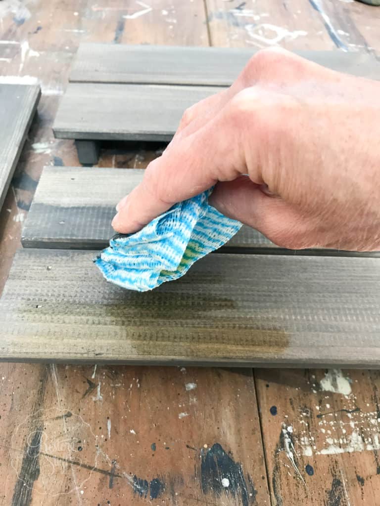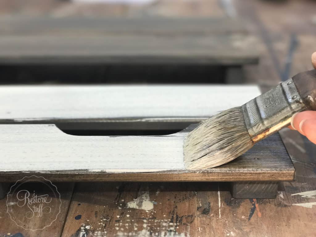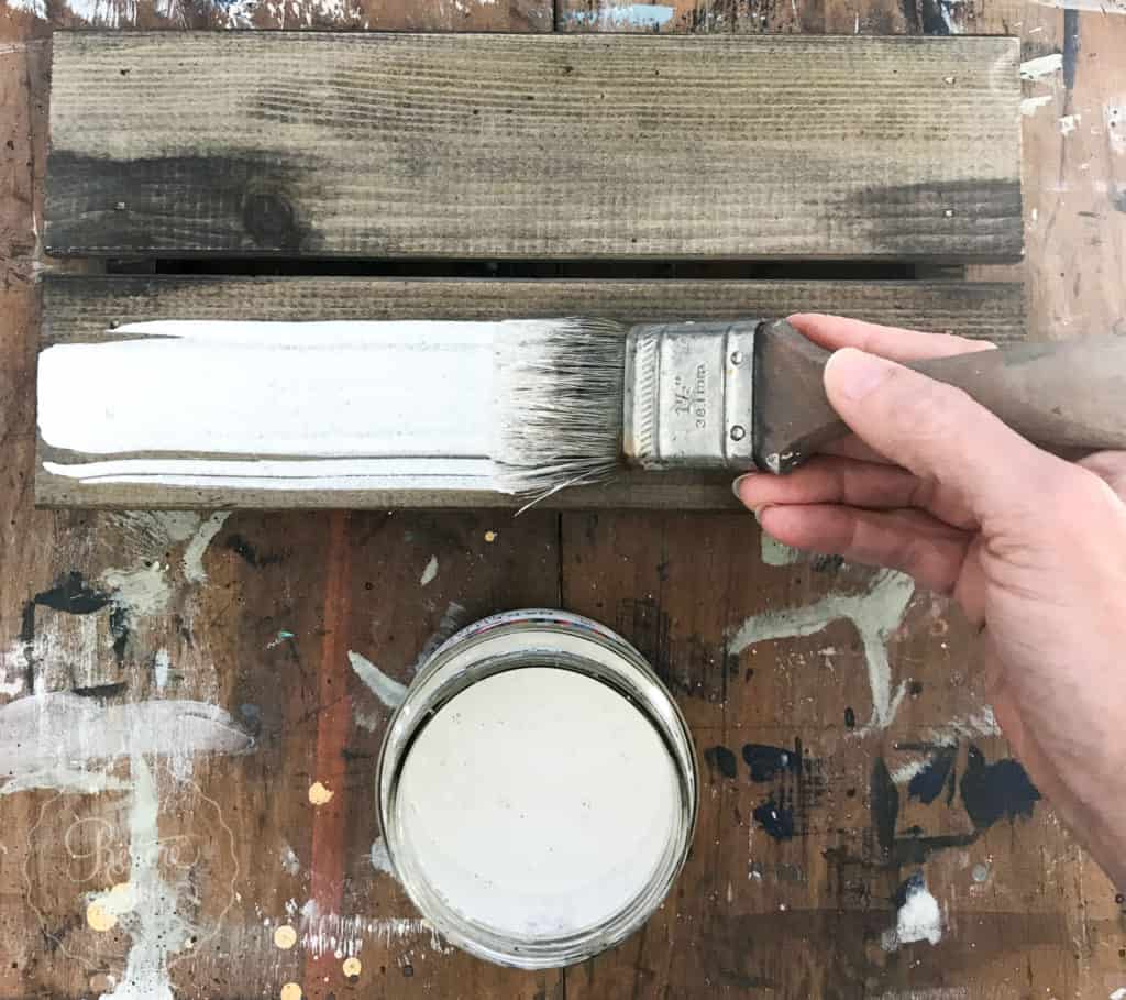 Apply the Farmhouse White as soon as you have applied the hemp oil. In fact, for this crate I worked in sections at a time. Applying hemp oil to one piece, then adding the Farmhouse White, then hemp oil the next piece, then Farmhouse White.