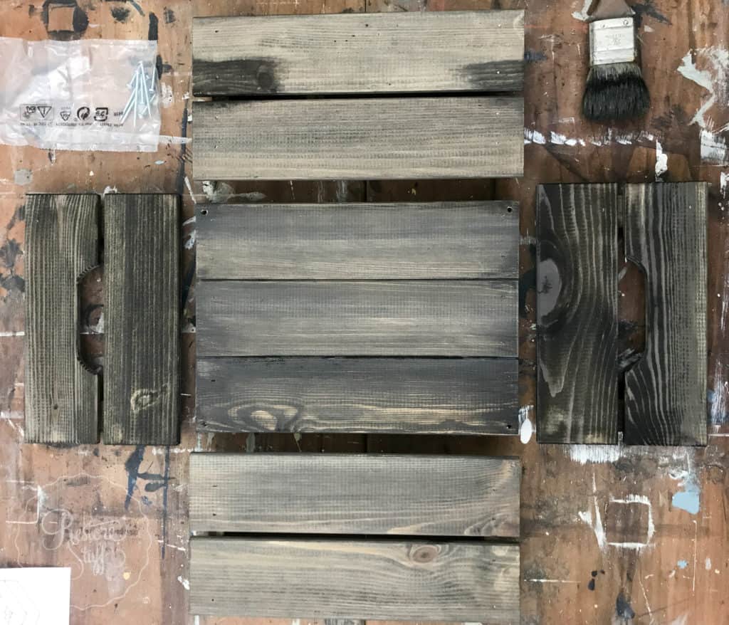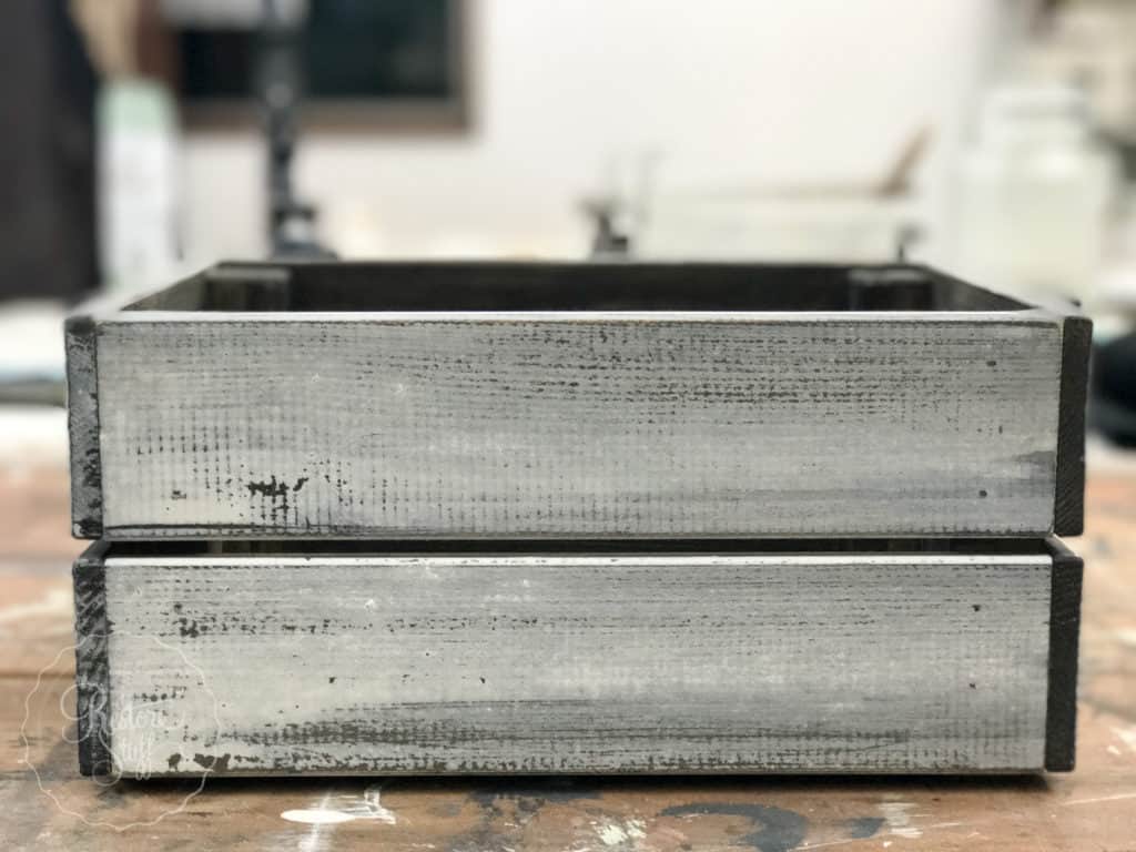 For this crate, I’m creating a two-toned, layered Farmhouse look, so I mixed the colour Typewriter – a charcoal black – as a stain.