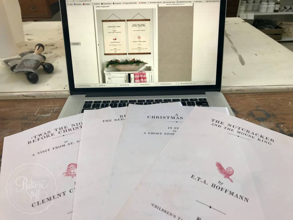 Totally inspired by Kristine’s images that she provided on her blog post, displaying her prints in various frames, creating a range of Christmas “looks” for your home, I chose to create the simple wood ends for my printed A4 size printables. (See the Painted Hive image below for my inspiration.)