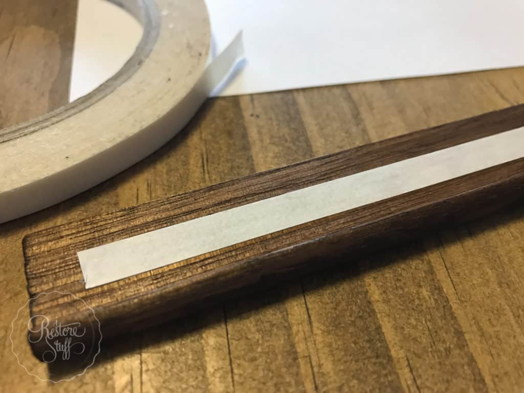 Then I added some double sided tape to the back of the wood trim, lined up my graphic image to ensure none of the image wording would be covered up by the width of my wood trim, then laid it on the tape to secure in place.