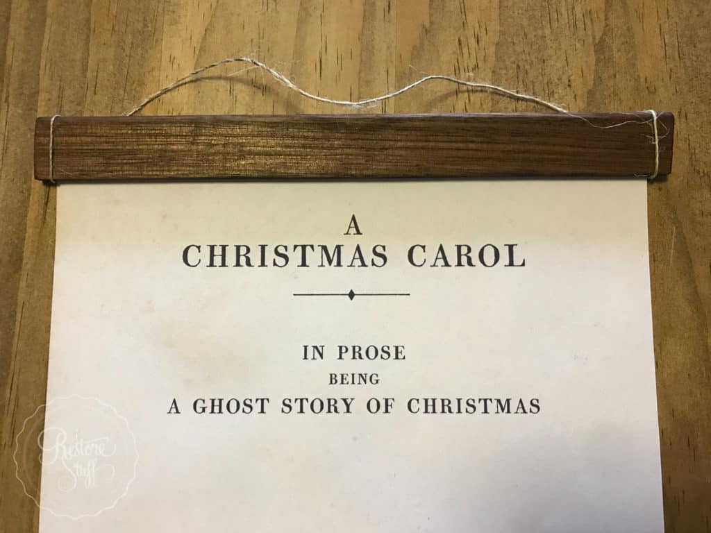Here’s where I was a little frustrated at not being able to come up with a better solution to hang these. Any screw, staple or tack would have come straight through the very thin wood trim, so best I could come up with was some string tied around each end to hang them. (Let me know in comments if you can think of something better. Would love to hear your ideas).