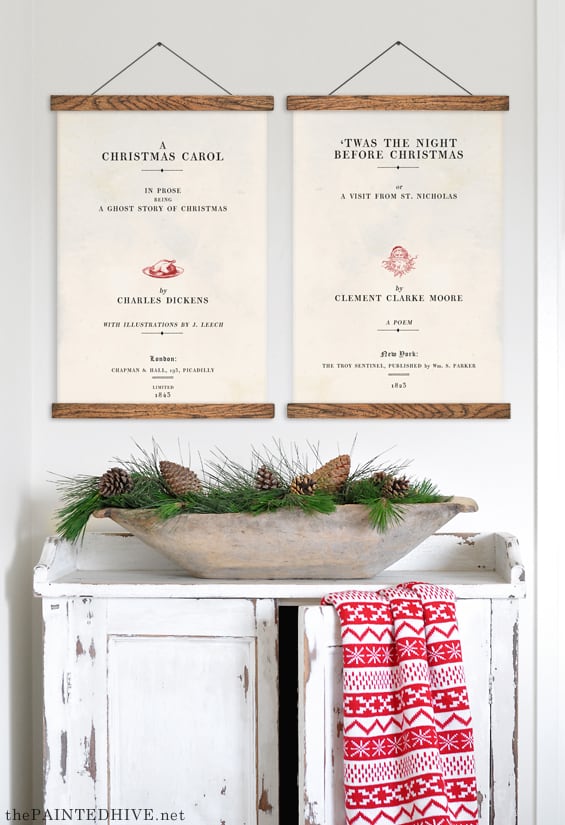 For the Christmas decor printables I used in this post, head to The Painted Hive blog post for step by step details on using these, by Kristine herself, including a few variations to hang them.