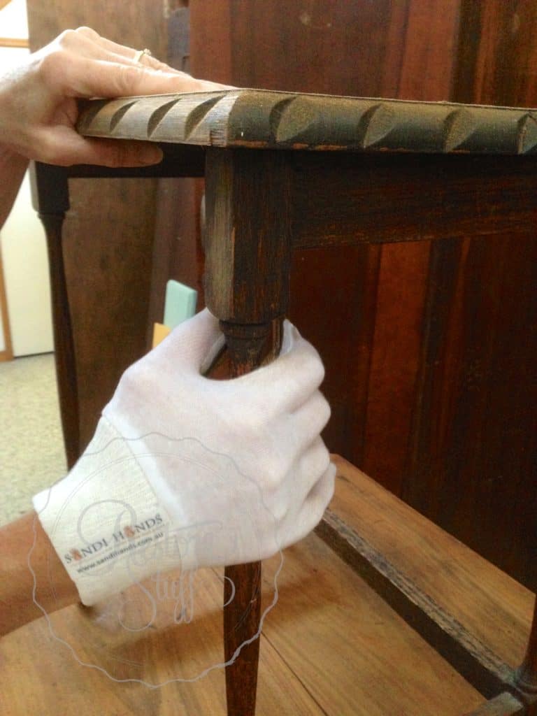 Sanding – I have already put together a blog post about the different types of sanding options that I use, which you can read in more detail here: How to Choose a Sander for Your Furniture Project. But one of “my favourite things” in this category is the Sandi Hands Sanding Glove. They come in a variety of types and sizes, from the Ladies Cotton glove (pictured below) to the more sturdy Tradesperson glove. So easy to use – hand shaped sanding grits of various sizes stick to the gloves via velcro which can easily be changed out as you require a finer grit for each project.