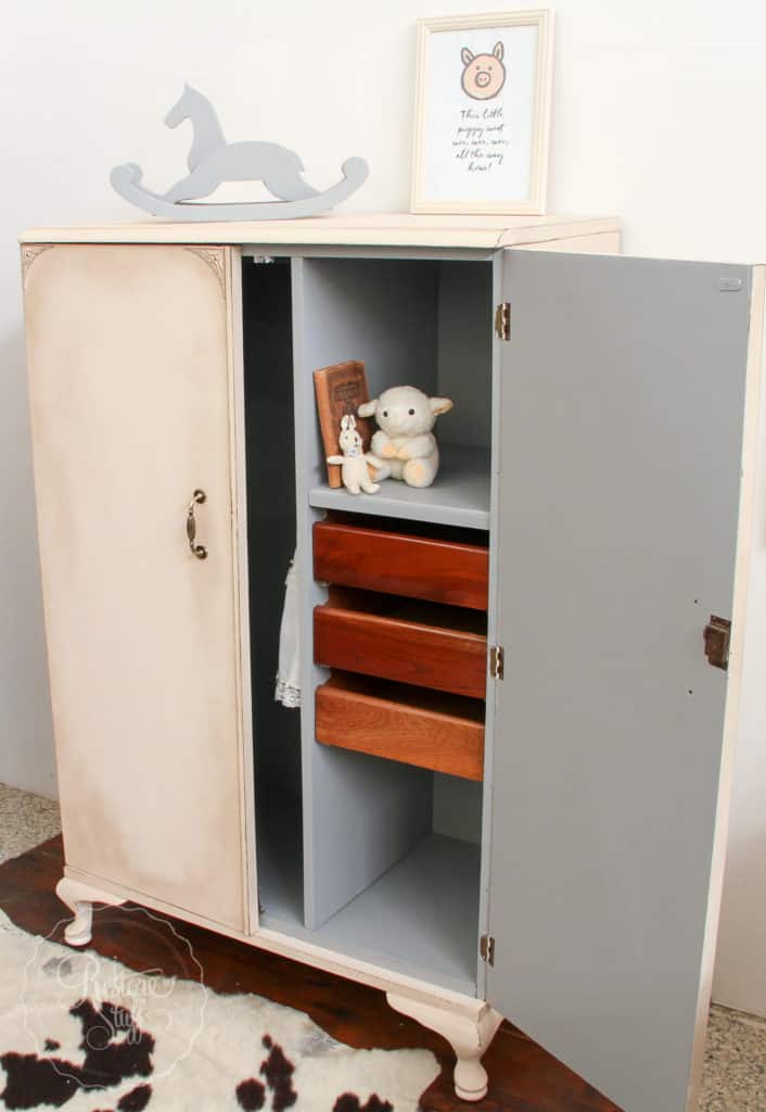 Stain Blocker – This problem comes up a LOT in furniture painting forums. What to do about the dreaded “bleed through” – ie. when tannins from the wood or underlying surface start to bleed through your newly painted surface, often in a pink or yellow tone. Especially noticeable coming through light or white colours. I shared a post about how I dealt with bleedthrough as well as “resist” (where the paint tends to bead over your surface that you are trying to paint on) while working on this old wardrobe. You can read about it HERE.