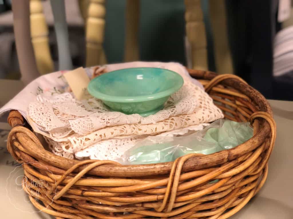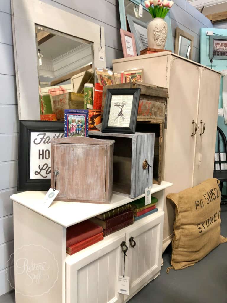 I took Amy to my Antique booth today at Camp Hill, and she really enjoyed helping to rearrange and style some of my things.