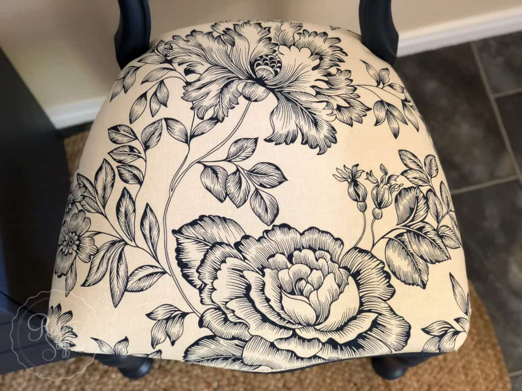 Here’s the fabric I picked out for the balloon back chair, which I happened to have in my stash of fabric supplies. I love the linen-look background and the detail.