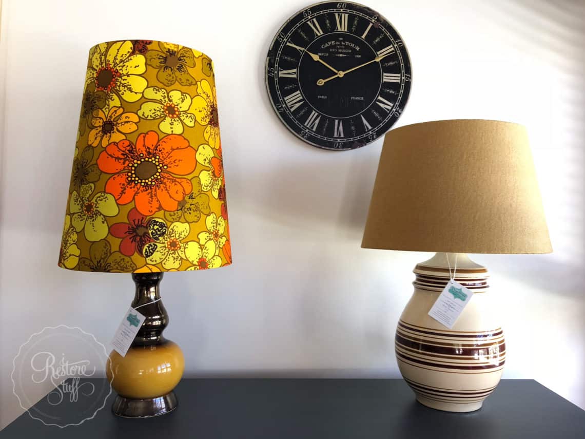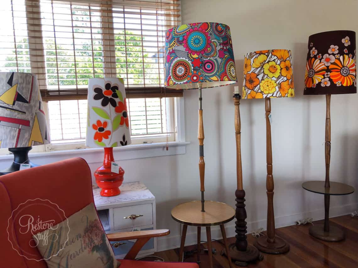 Walking into Wendy’s lampshade workshop space, is like a trip back in time to a retro era of bold patterns, colours and florals, mixed with wood & ceramics. Her beautiful lamps, that she is quickly becoming known for in the bespoke vintage/retro furniture and decor world, adorn her living spaces, showcasing an array of lampstands and shades from eras gone by, along with contemporary styles.