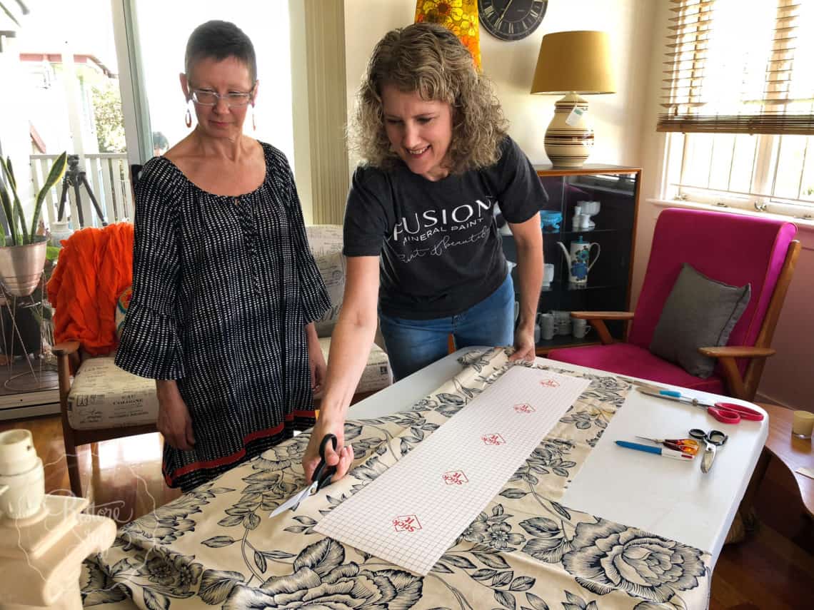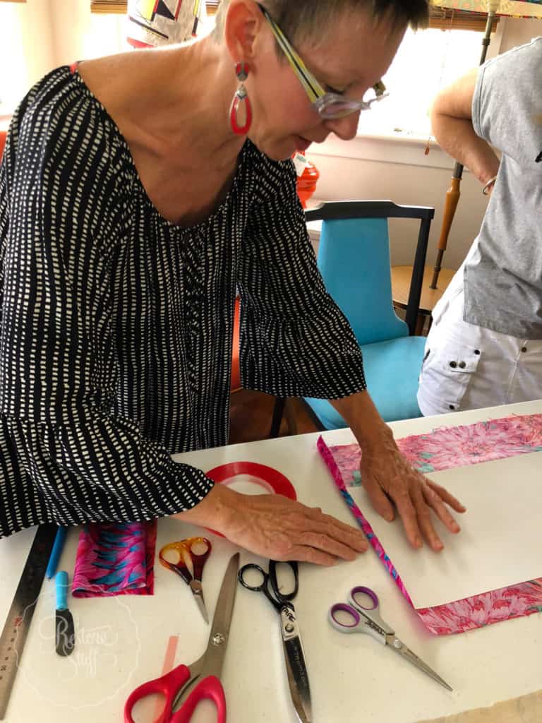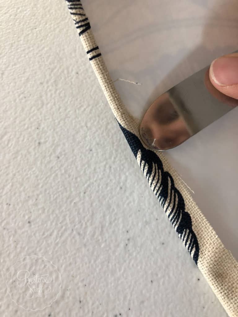 - measuring cut lines from the edge for turning the fabric around the rim of the lamp shade frames,