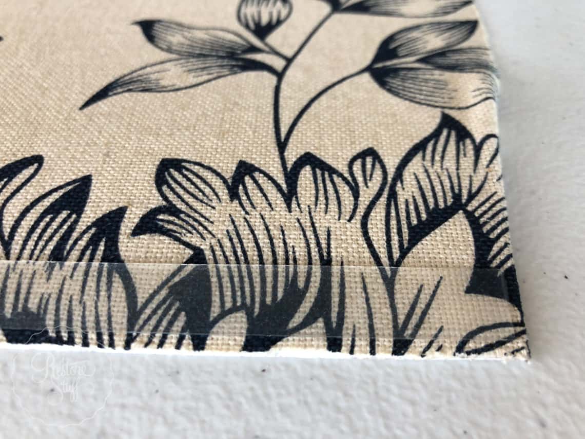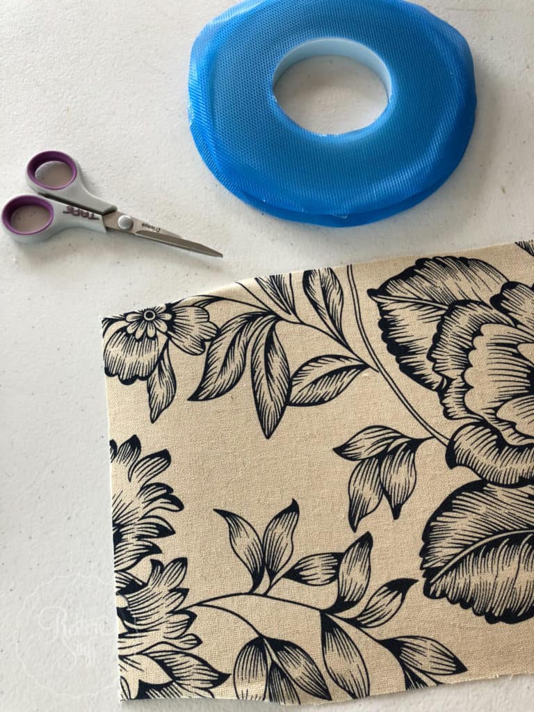 - and using double-sided Tesa tape to adhere fabric to PVC, as well as seamstick for better adhesion on the finishing edges of the lampshade seam.