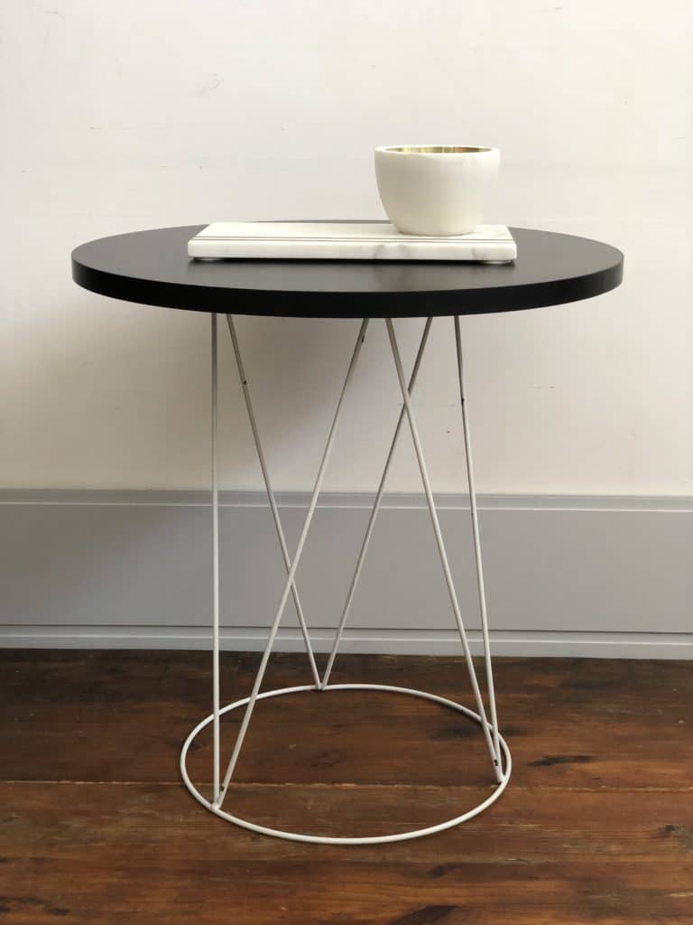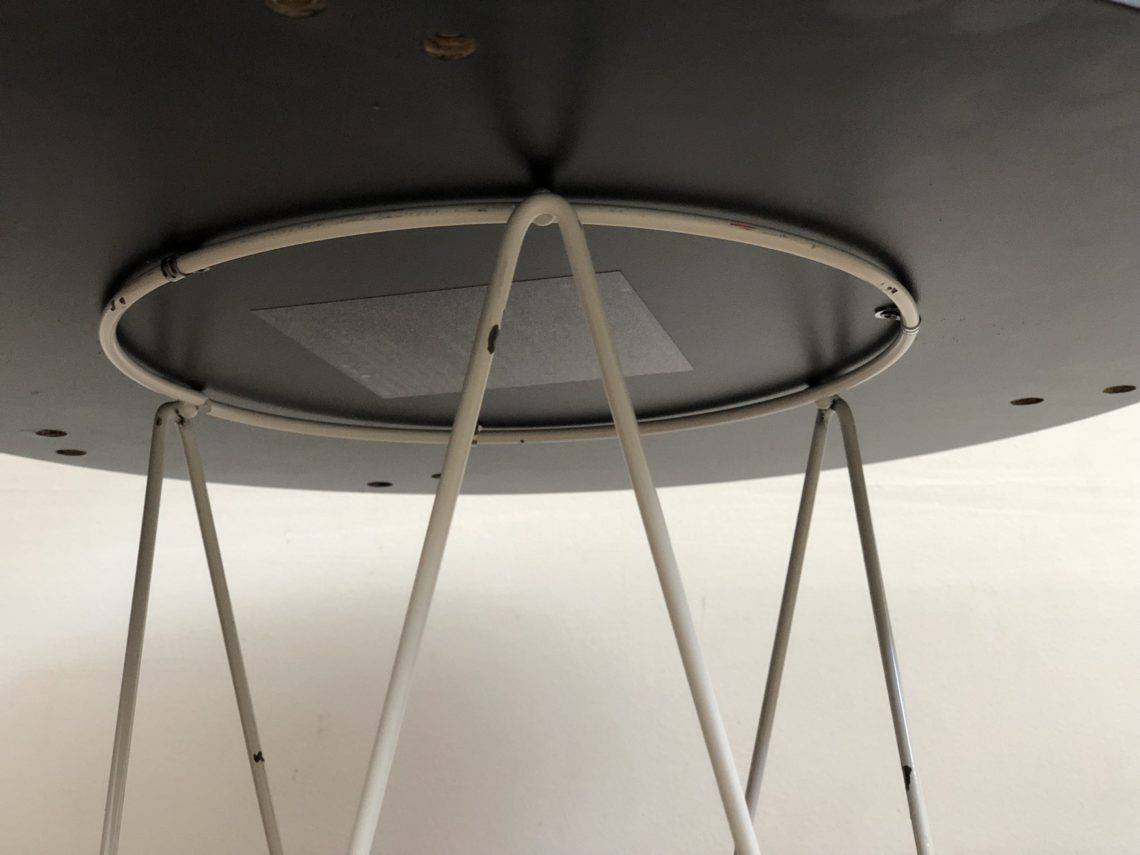Another item I was looking for at KMart, was this nifty table with hairpin metal legs. But this one is for another project … another post. However, since I’ll be using the legs and not the top, this plain black top would be perfect for my pot stand hack.