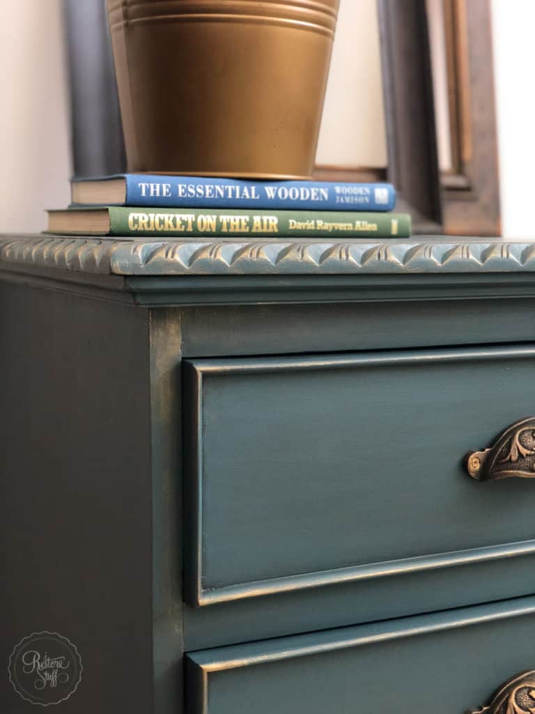 Finally, I wanted to try something to take this piece to the next level. After adding the drawer pull cup handles, I thought it looked pretty amazing already. But what if we could make this piece “pop” even more and add a little “bling”?!