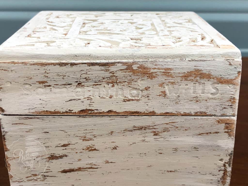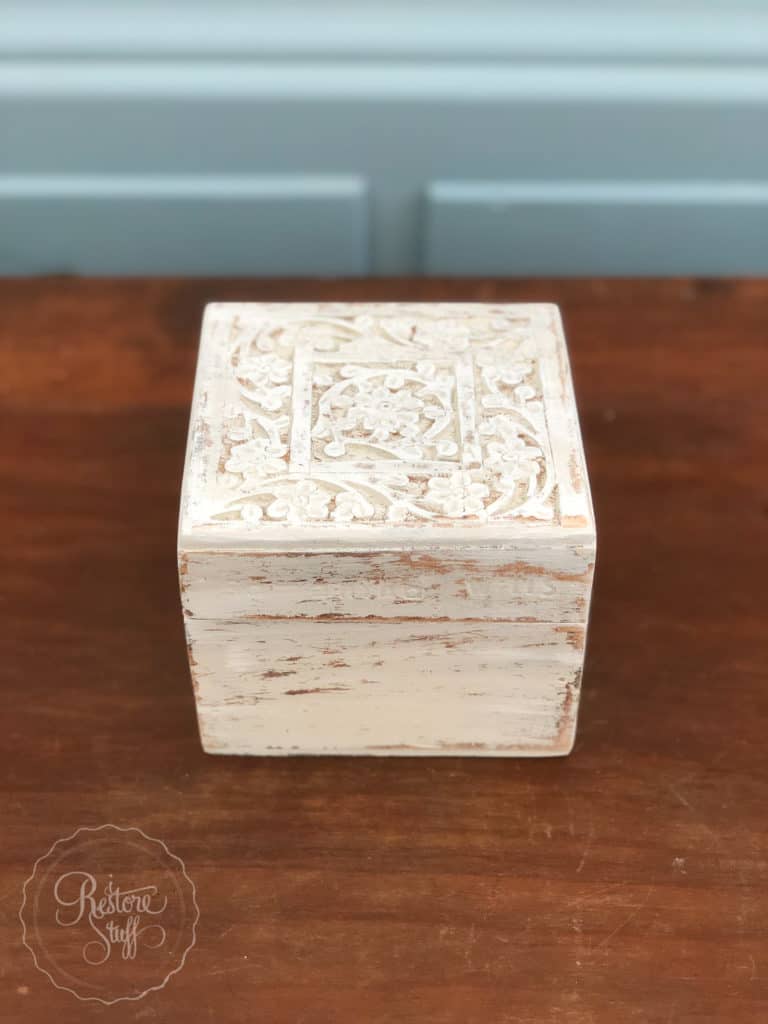 This next item is actually a Samantha Wills jewellery box that I also found at our local Salvos Store op shop. It’s cute, but I love the white shabby, chippy look and figured it’s still a bit of a trend in my neck of the woods, so decided to do that.