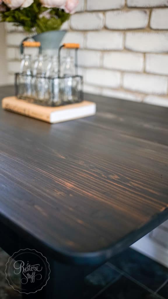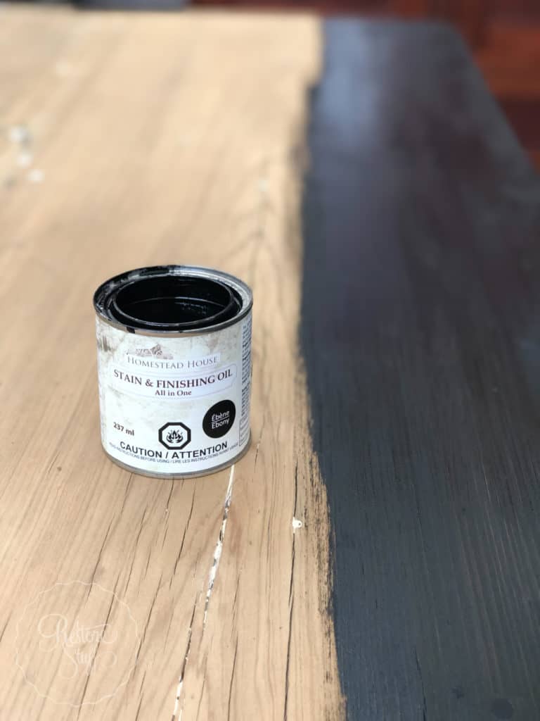 There were so many putty holes and fill spots that I decided the best stain colour to use for this table was going to be Ebony – Fusion’s Stain & Finishing Oil in their black colour. (*Find Ebony SFO in USA/Canada HERE)