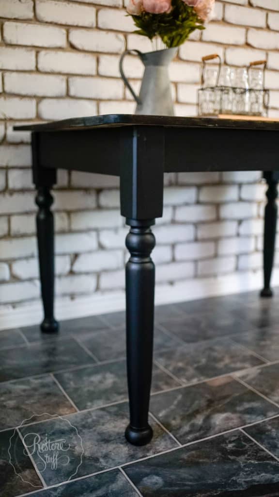 That left the base of the table free for me to paint. I used Fusion’s Coal Black on the base which only needed a clean, no sanding necessary as it was weathered and porous enough to hold the paint well.