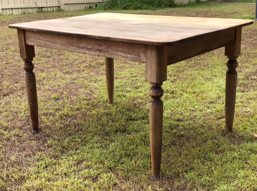 I found this old weathered farmhouse table on Facebook marketplace earlier this year and thought it would be perfect for a black farmhouse table makeover.