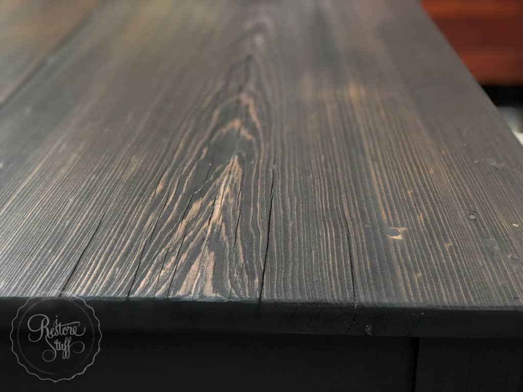 In this video I’ll show firstly, the staining process I used, but then after it has dried for a day, how I sanded it back along the grain to reveal more timber with the Ebony stain still sitting in the grooves of the timber.
