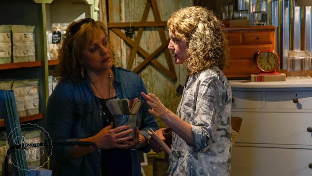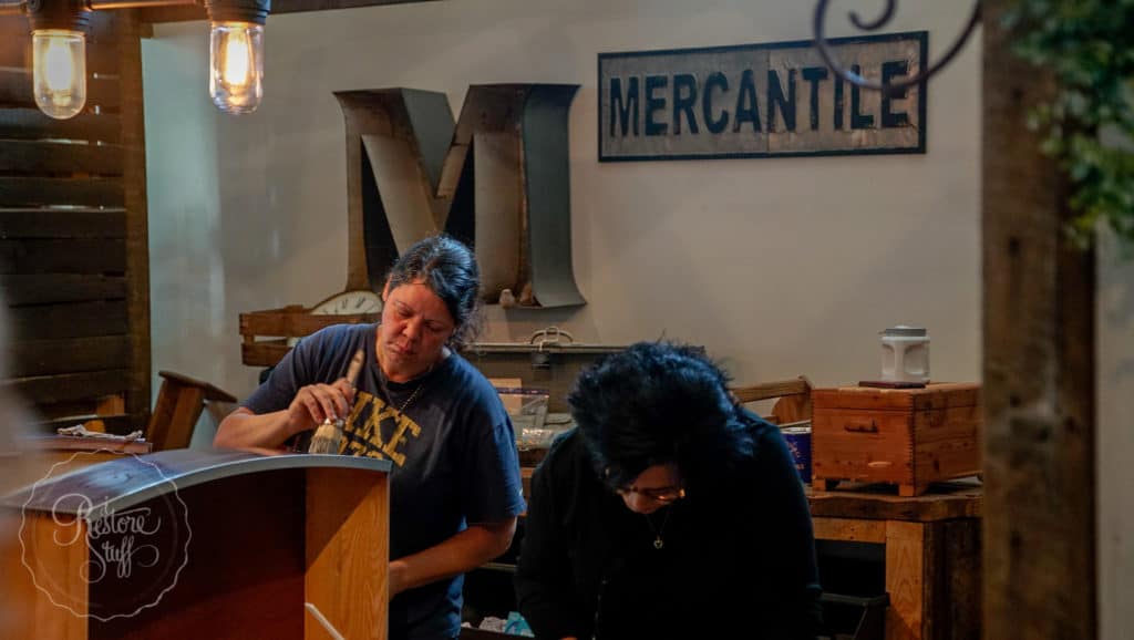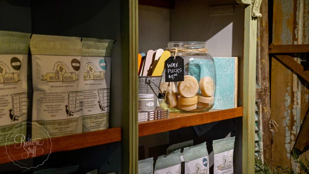 Kim has been a Miss Mustard Seed’s Milk Paint retailer for a number of years and in fact, if you’re a MMS fan, you may remember Marian Parsons took a trip to visit family late last year and stopped in at Kim’s booth to hold a MMS Milk Paint demo along with a meet & greet. Here’s what Marian wrote about her visit to The Mercantile.
