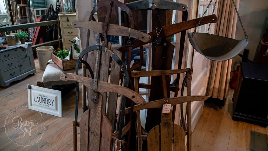 These antique sleds would be such a rare find in Australia where we hardly see any snow, especially where I live in Queensland. To see so many in one shop was kinda out-of-the-ordinary for me.