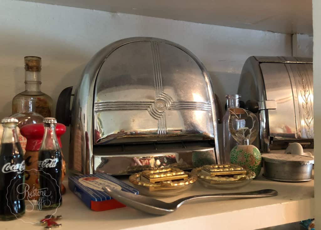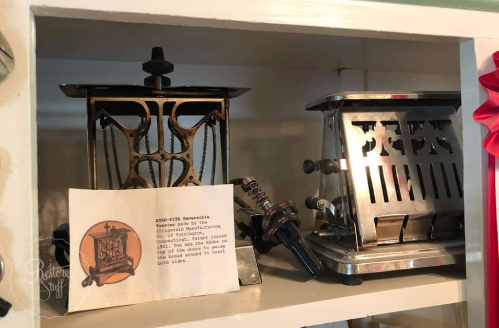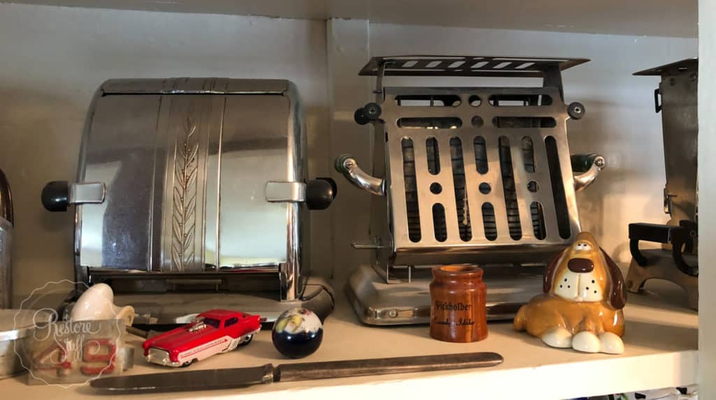 Let’s take a closer look at this hutch for some hidden gems … like their vintage toaster collection: