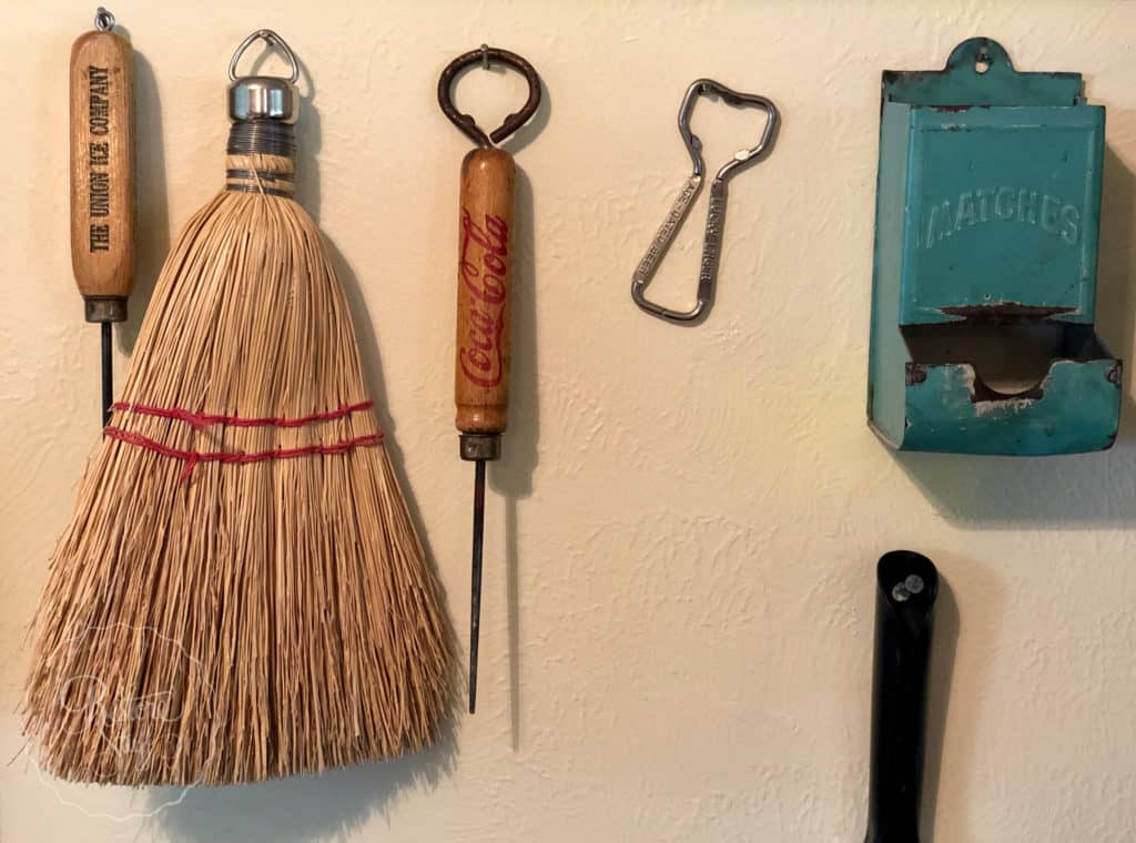Ellen found a great way to display their collection of vintage kitchen utensils on this old door.