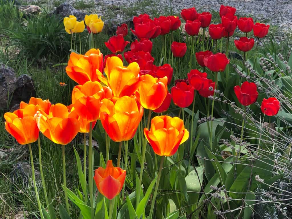 I just had to add these tulips here – I LOVE tulips in the spring and they are prolific in parts of the USA that we have visited or lived over the years. These are scattered along the fence line of Dave & Ellen’s back yard, front garden and could be seen in neighbors gardens along the streets of Emmett.