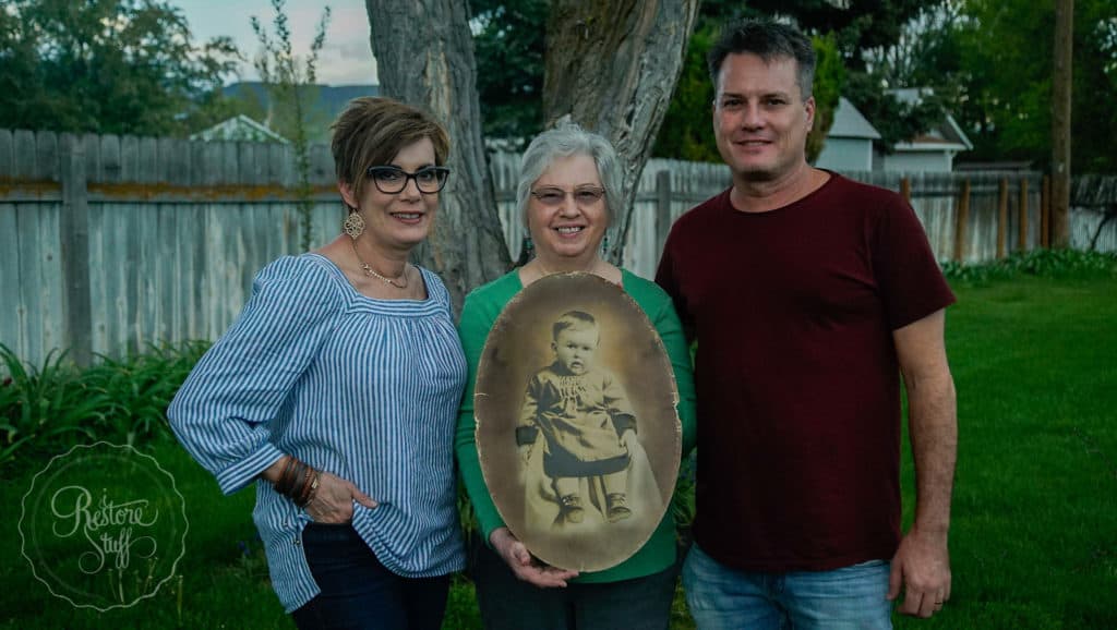 Aunt Ellen (holding a picture of her dad when he was little), with Marty & his sister, Paula.