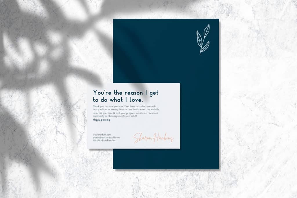 With an approved style guide for the I Restore Stuff brand, Amber designed my print collateral including “Thank You” cards, stickers, flyers, business cards, price tags and more. Physically holding the new branding in your hands is so rewarding!