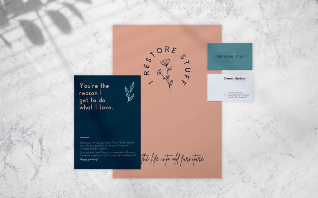 With an approved style guide for the I Restore Stuff brand, Amber designed my print collateral including “Thank You” cards, stickers, flyers, business cards, price tags and more. Physically holding the new branding in your hands is so rewarding!