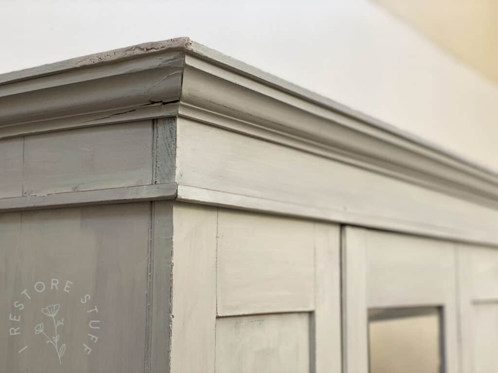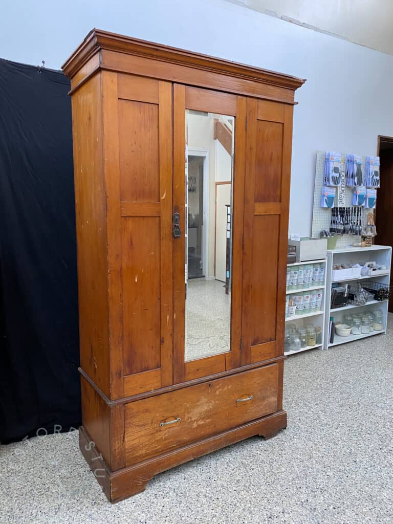 This wardrobe makeover that I thought was going to be straight forward, started off with a little challenge. I’ve had this piece for some time and knew that I wanted to paint it in Miss Mustard Seed’s Milk Paint, so chose the colour Mora, but first it needed a little work.