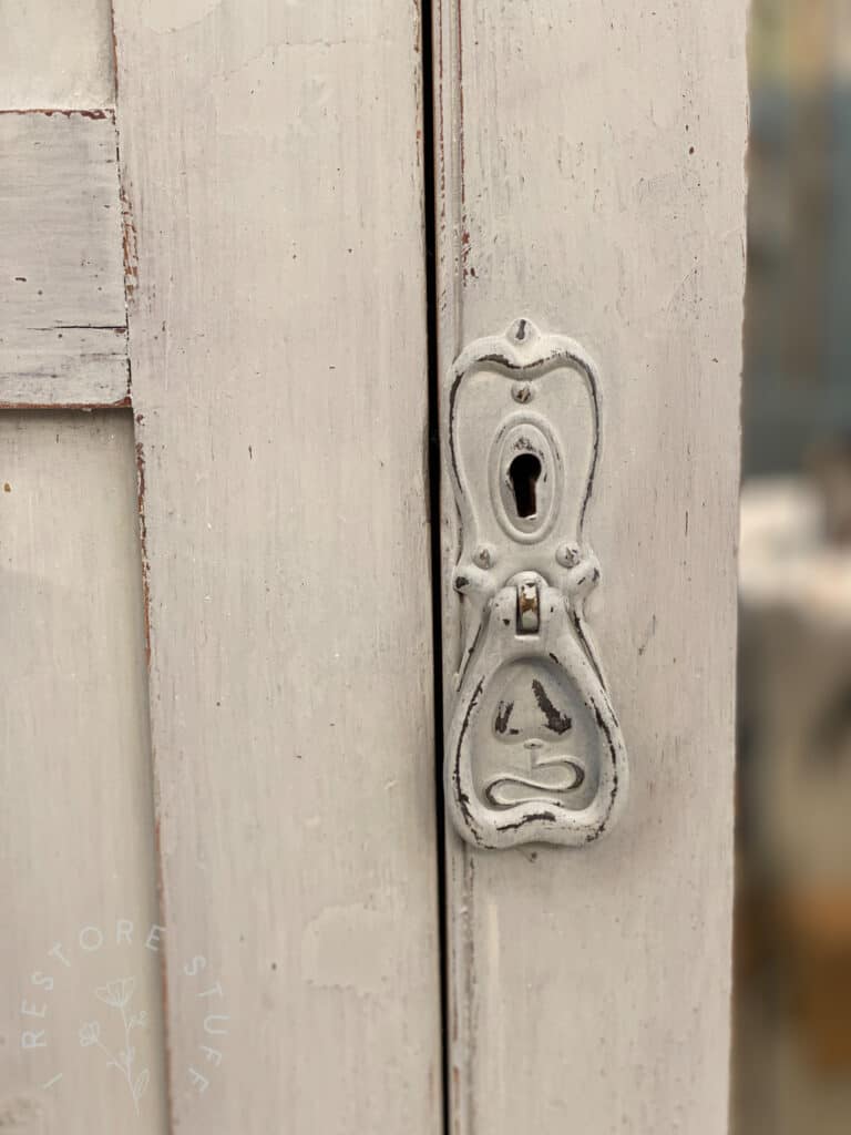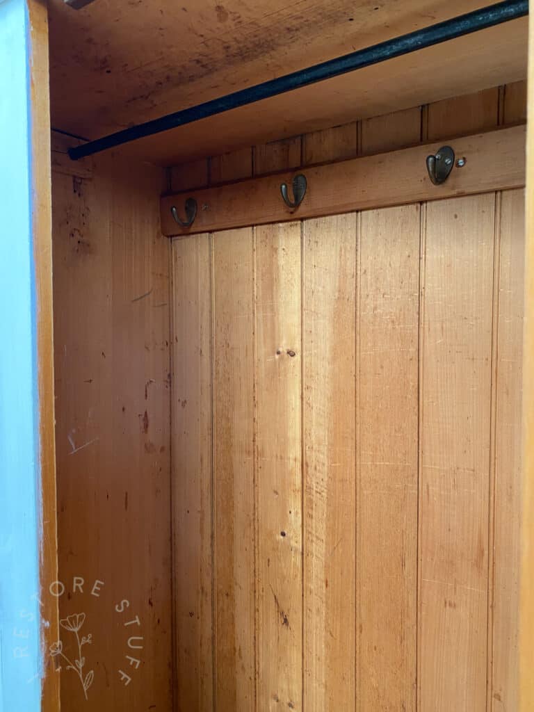 I left the inside of the wardrobe unpainted. I love the old wood look inside.