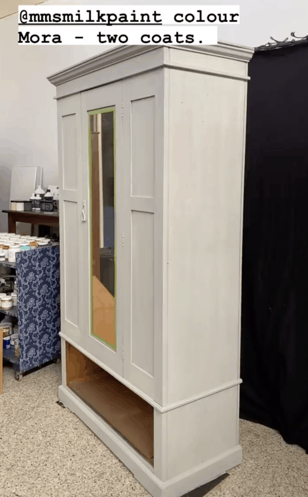 I had to screen shot some of my Instagram stories (above and below) because I forgot to take progress pics during the painting process. But you can always use the search bar at the top of my website to see so many other projects using Miss Mustard Seed’s Milk Paint where I show you mixing, painting, etc. Here’s one of my Youtube videos for example.