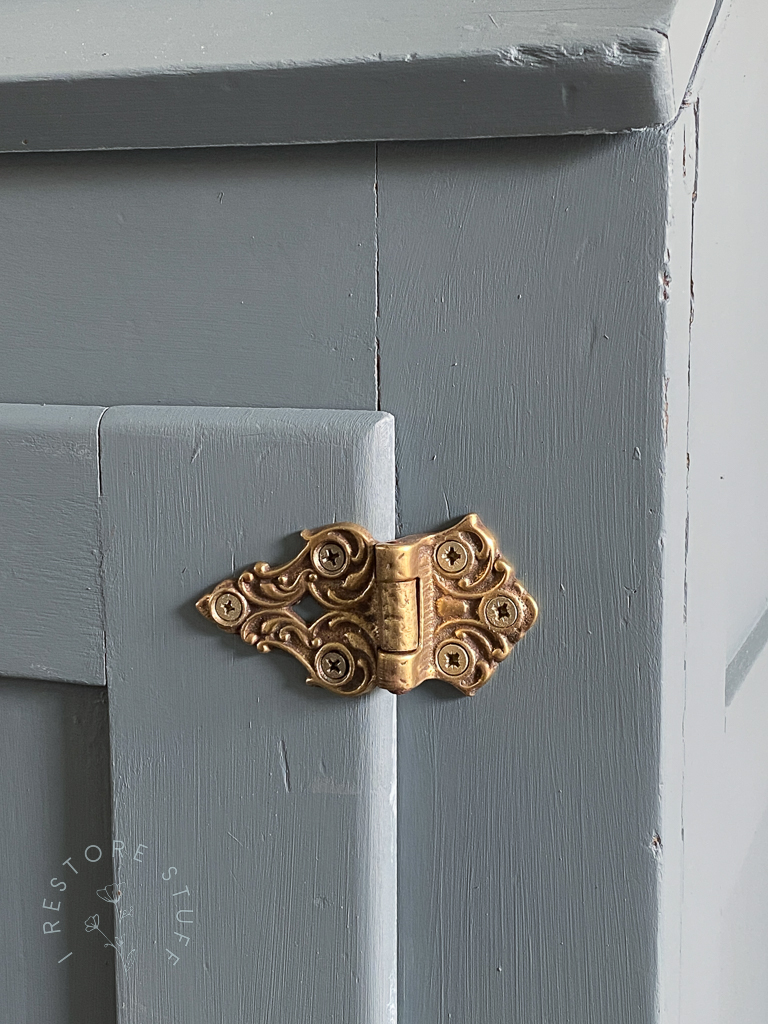 I removed all the old hardware which was looking pretty aged and grungy. I thought I’d try cleaning them up, and was surprised at the beautiful result.
