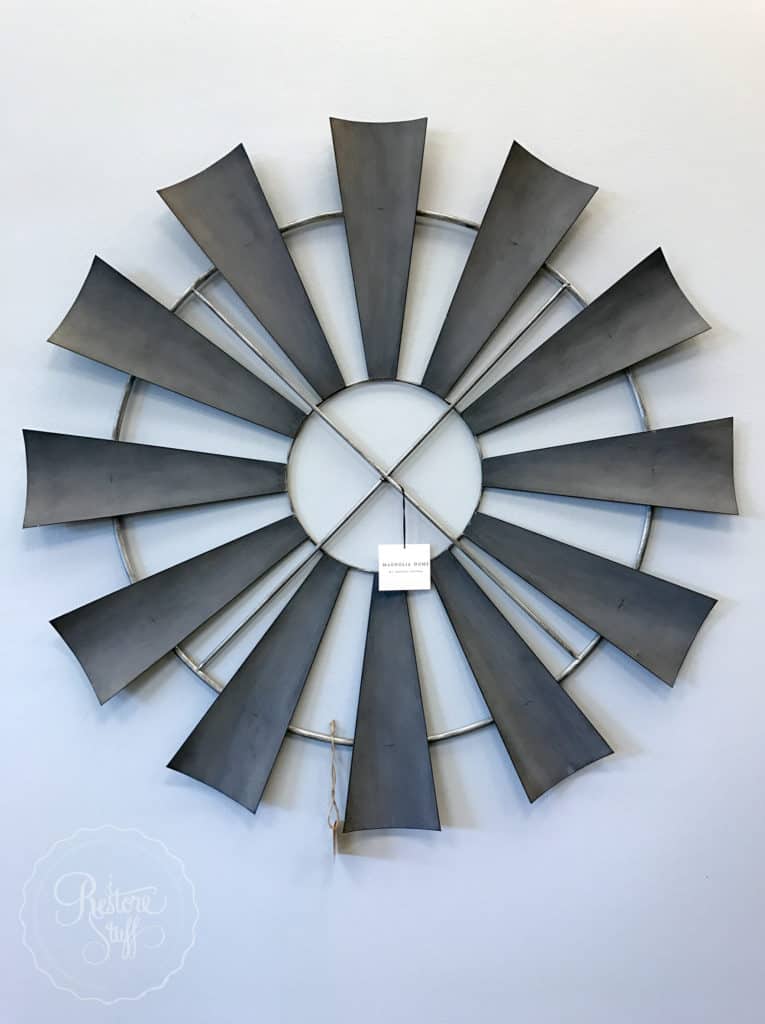 Wall art windmill by Magnolia Home at 70 West Home Furnishings, NC.